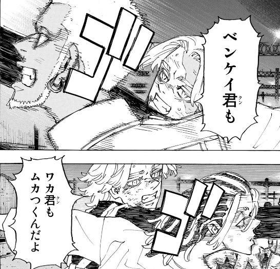 イヌピーは「ベンケイ君もワカ君もムカつくんだよ」とレジェンド二人相手を殴りつける。